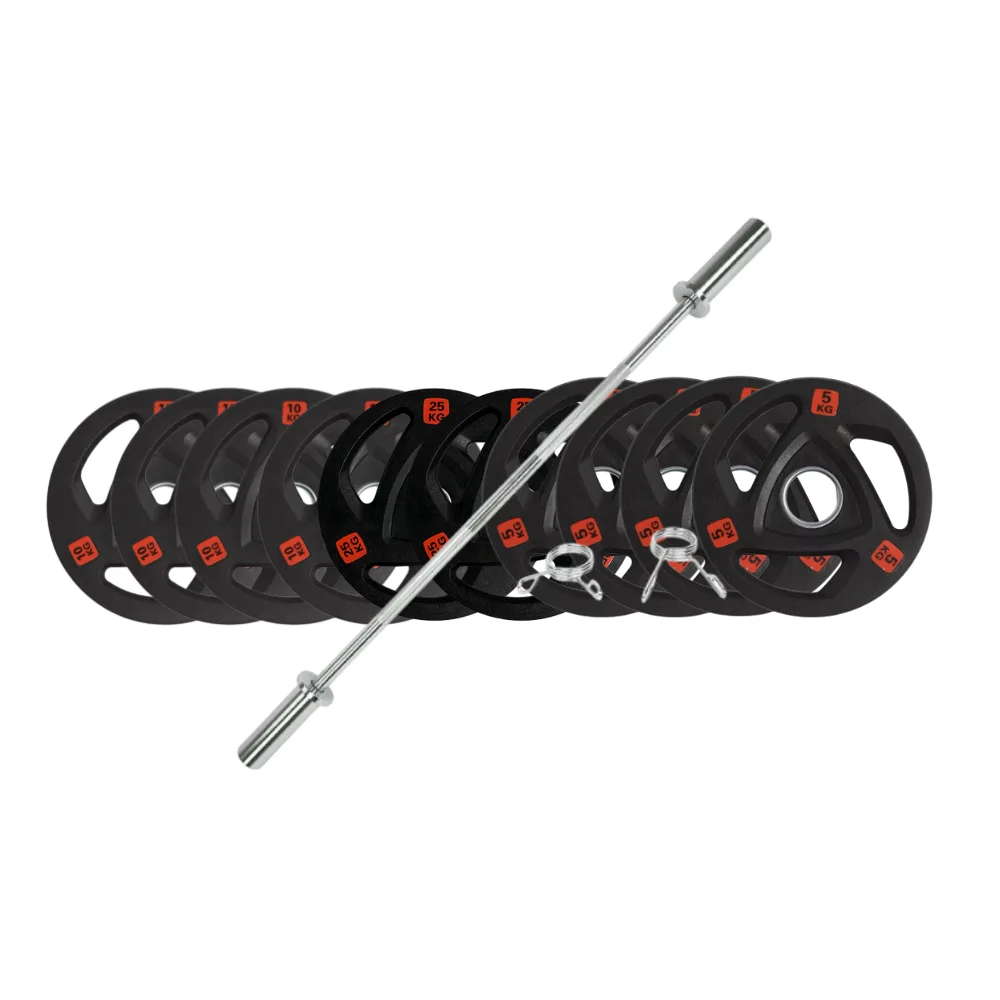 110kg Weights Set | Olympic Barbell with Rubber Coated Weights