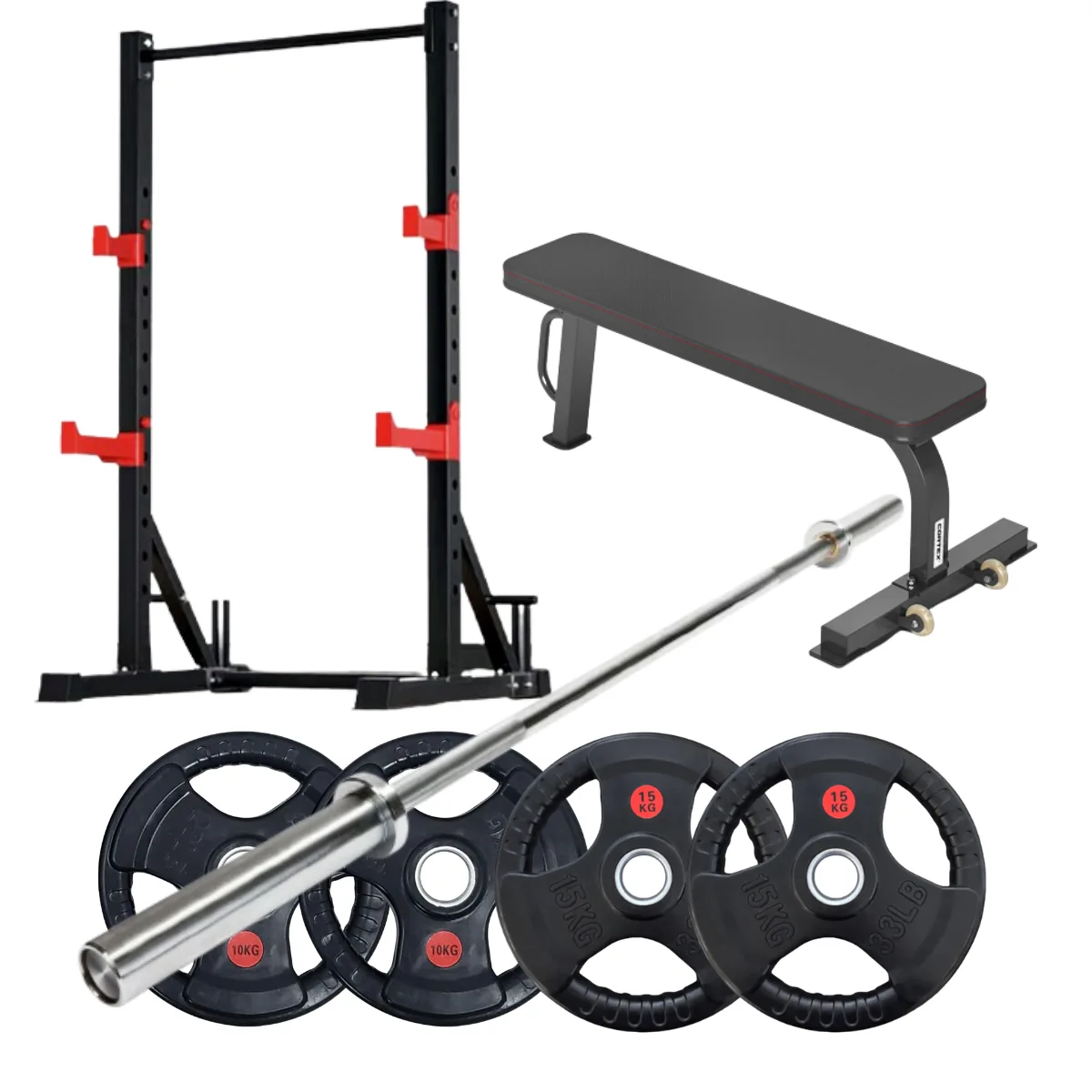 Squat Rack with Barbell Set and Flat Bench