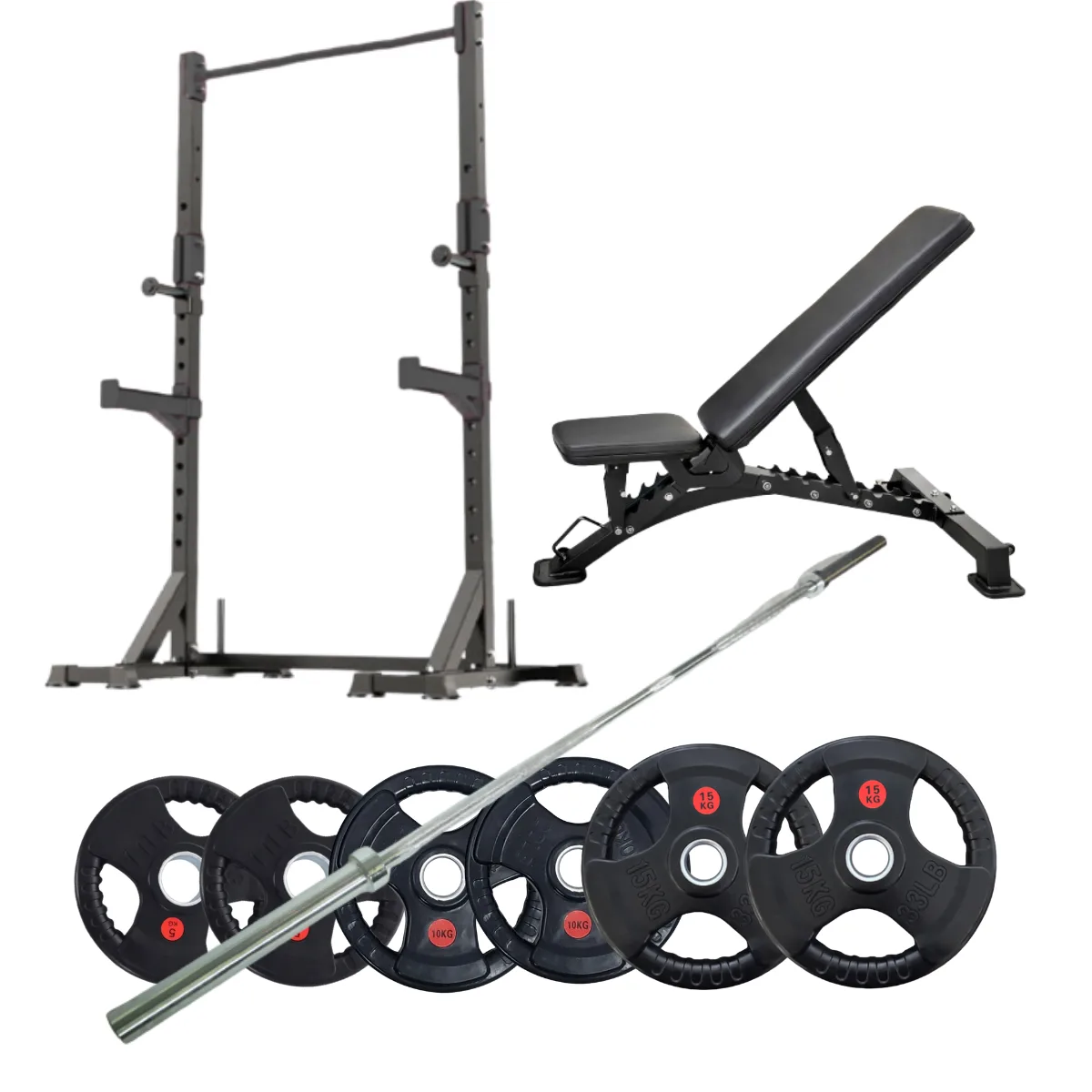 Commercial Squat Rack Set | 150KG Weights with Adjustable Bench