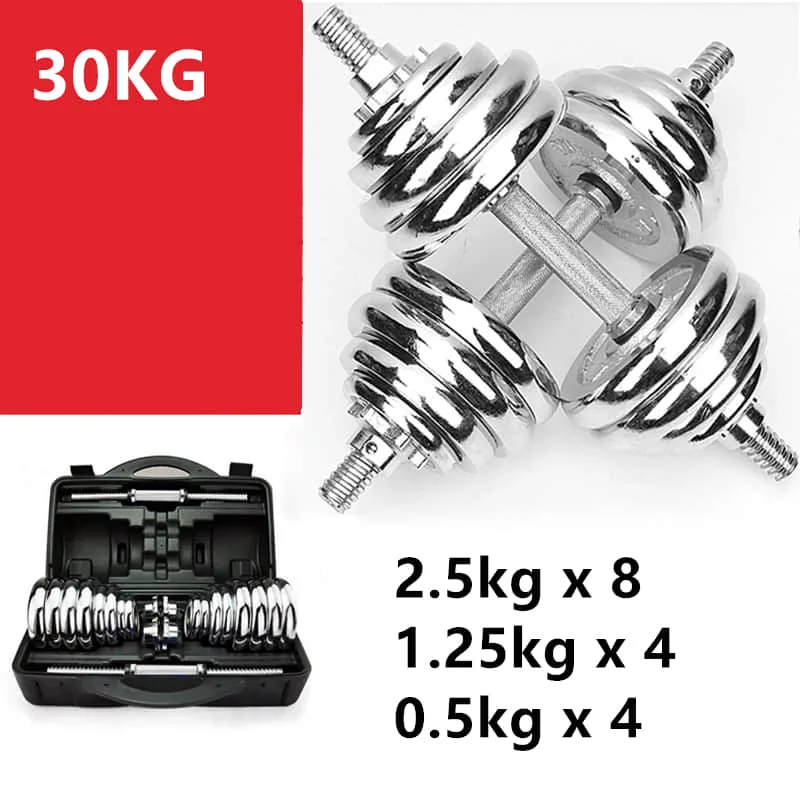 This adjustable dumbbell weight set is a perfect home gym equipment to have, it can be carried around with ease and is adjusted depending on your level of exercise. Multiple weighted dumbbells are all included in ONE case. Strength training is one of the most effective ways to reduce body fat, increase lean muscle mass and burn calories more efficiently, strength training is an important part of any fitness program. If the fixed dumbbells are too light, you can choose this 30kg dumbbell set, Simply unscrew the Spinlock collar and increase the load slightly by adding another disc.