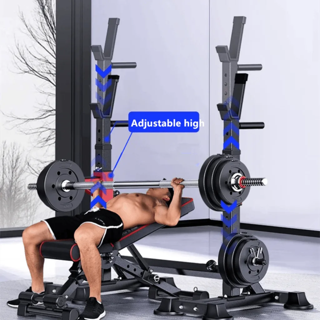 Improve your daily workouts with the essential Adjustable Squat Rack from Lee Warehouse. Designed for squats and a variety of exercises, this adaptable equipment provides a secure and adjustable foundation for your fitness routine. Whether you’re a new fitness beginner or a seasoned lifter, our squat rack is engineered to meet your fitness goals while ensuring safety and effectiveness. Crafted from robust, heavy-duty materials, the squat rack offers stability and security during lifting exercises. Its durable frame supports your workouts. It supports you in boosting your confidence to push your limits and achieve your strength-training objectives. The built-in safety features act as a safety net, catching the barbell in case you can’t complete a rep, reducing the risk of accidents and injuries – a crucial advantage, especially for solo training sessions at home.