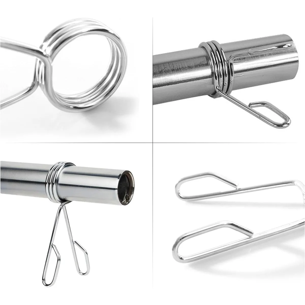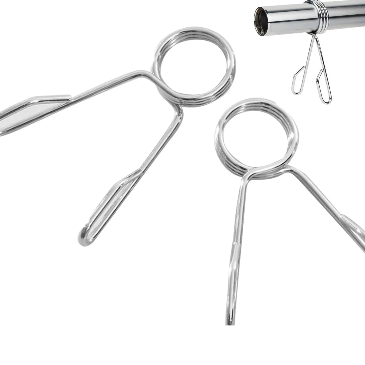 Barbell Metal Clips: It is also known as Olympic barbell collars, or securing devices designed to fit standard 50mm diameter Olympic barbells. They help keep weight plates securely in place during strength training, preventing them from sliding or shifting during lifts.
