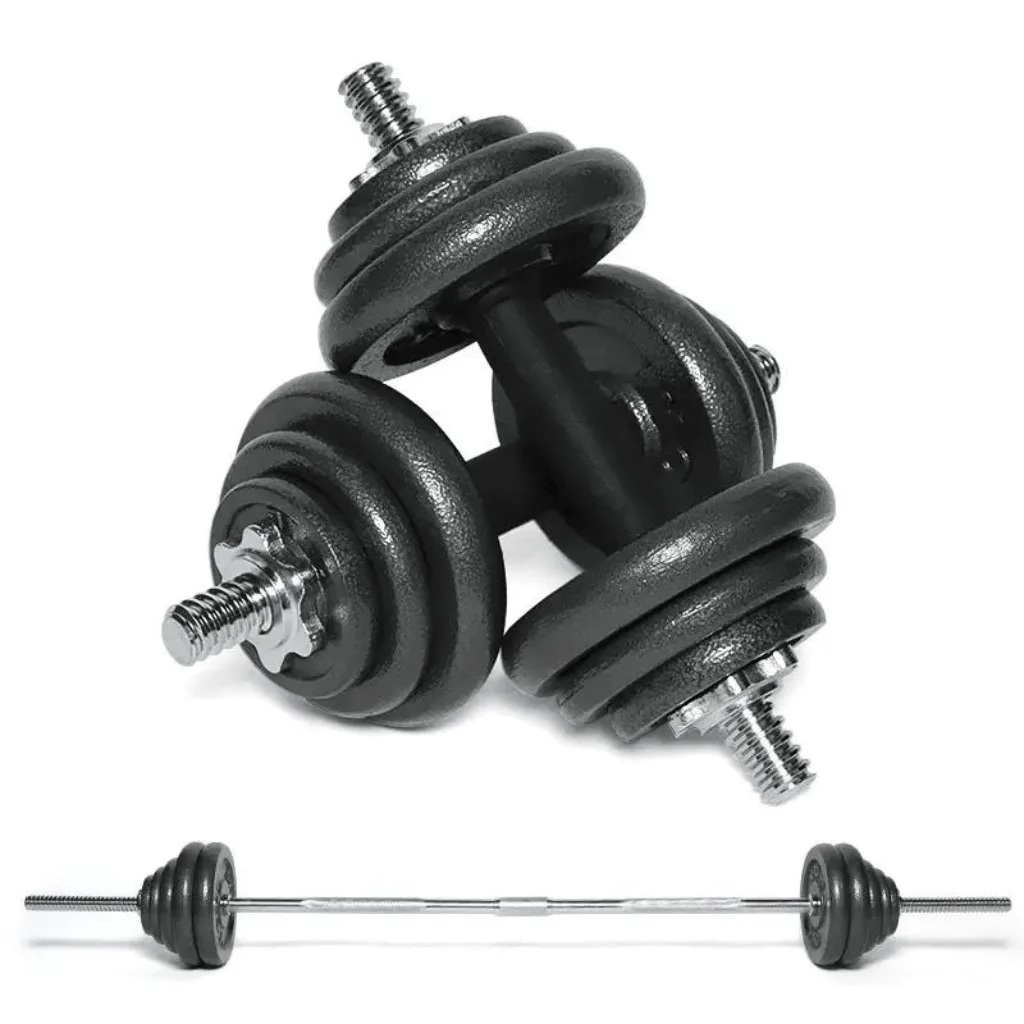 - Teh dumbbell and its extension will get to a 1.5m barbell as well. you can do it for squats or bench presses.