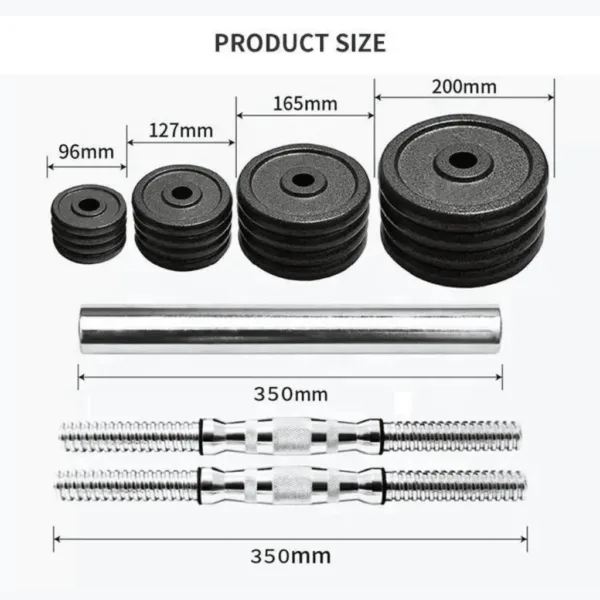 - Includes dumbbell rods for easy creation into two weighted dumbbells