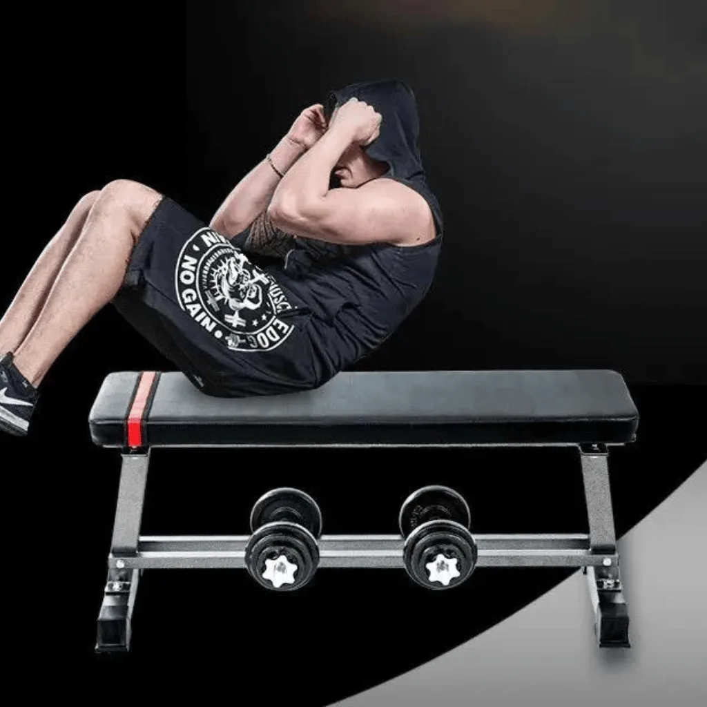 A flat bench offers a flat-level surface, which is a perfect choice for exercises like bench presses, dumbbell presses, tricep dips, step-ups, and various core exercises. It provides a stable base for performing these movements safely and effectively. In addition to strength training, a flat bench is also suitable for high-intensity interval training (HIIT) workouts. You can leave your dumbbells at the bottom as storage. Effectively challenge your body and promote muscle growth from different training by a wider range of exercises. You can leave your dumbbells at the bottom of the bench as a storage, saving your space.