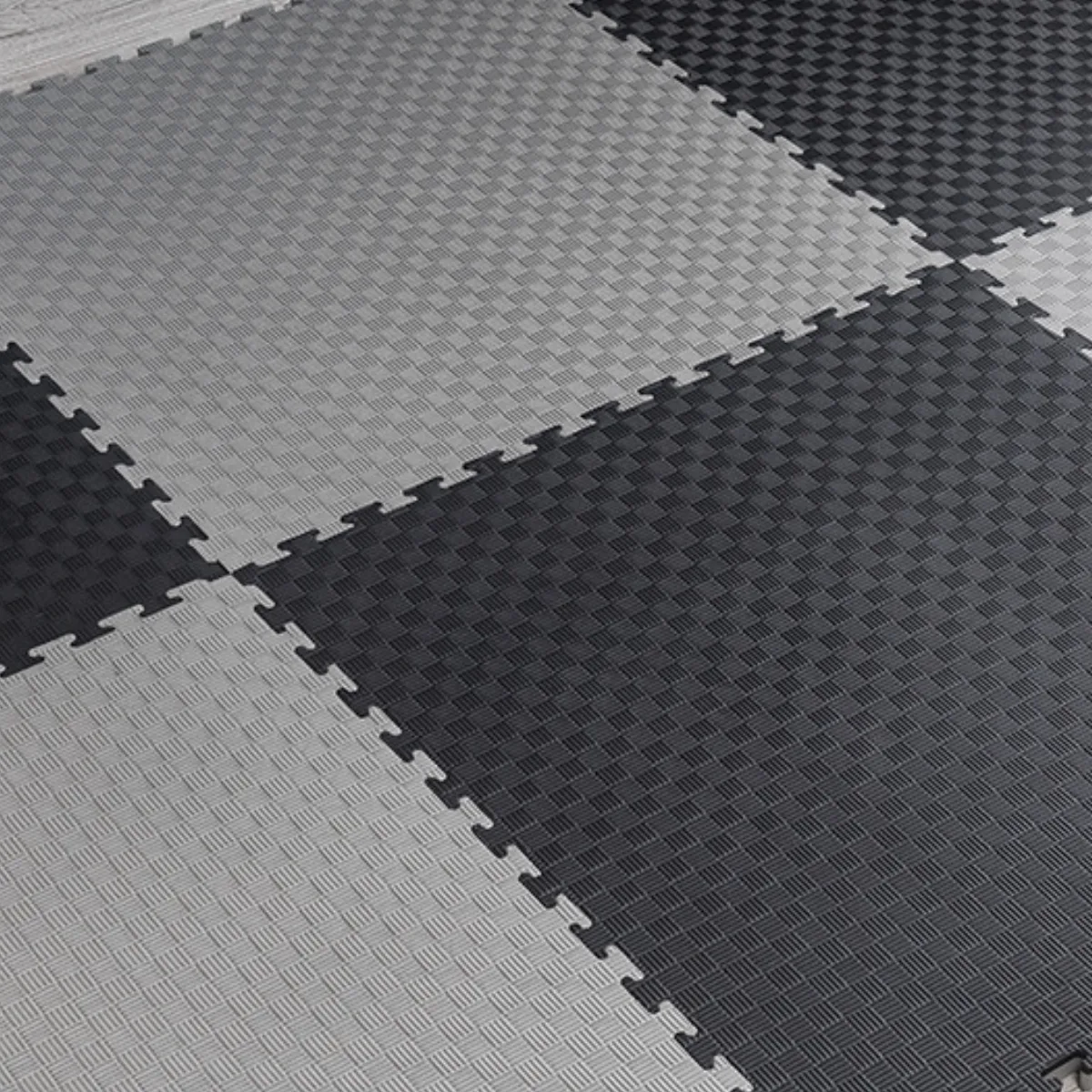 Interlocking Mats Higher Density: It is durable, the cushioned floor coverings typically made of high-density EVA foam. Each mat has interlocking edges, resembling puzzle pieces, allowing them to fit seamlessly together. This design enables easy installation and secure coverage over various surfaces without adhesives, making it convenient for creating custom-sized gym floors. These mats provide shock absorption and reduce impact, protecting joints during workouts and offering a non-slip surface for safety. Available in a range of thicknesses, they are ideal for home gyms, fitness studios, and play areas, and can be quickly disassembled for storage or transportation.