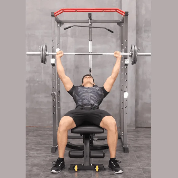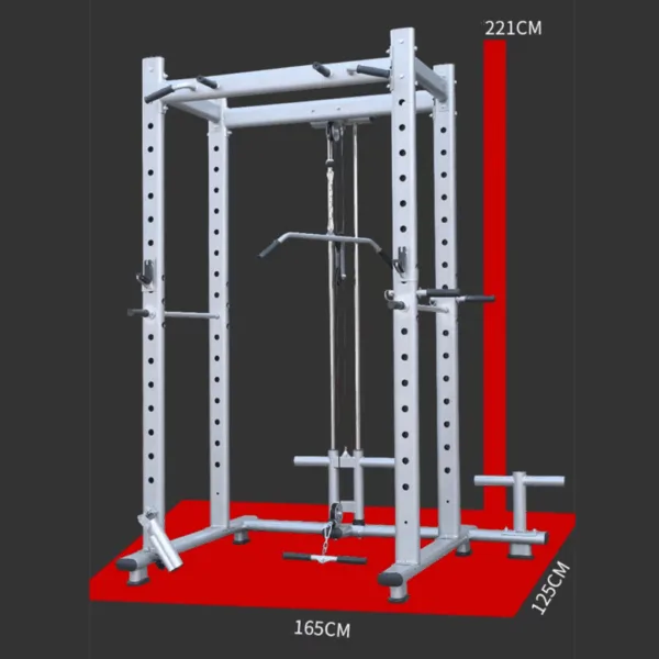 Designed for a range of training purposes, the Power Rack Cage with Lat Pulldown is a flexible and feature-rich piece of equipment. This power cage offers a variety of exercises and is an excellent addition to any home gym or light fitness studio thanks to its integrated lat pull-down cable system. This versatile power cage offers plenty of room for various strength training exercises like squats, bench presses, and deadlifts. Additionally, you may target your back, shoulder, and arm muscles with the integrated lat pull-down system, giving your training regimen even more adaptability.