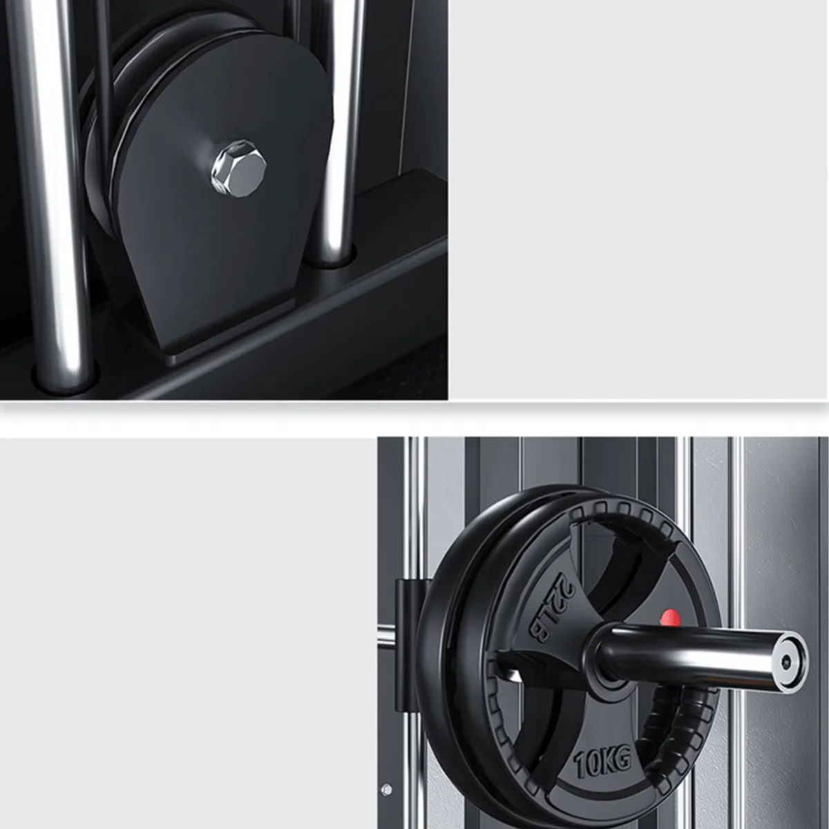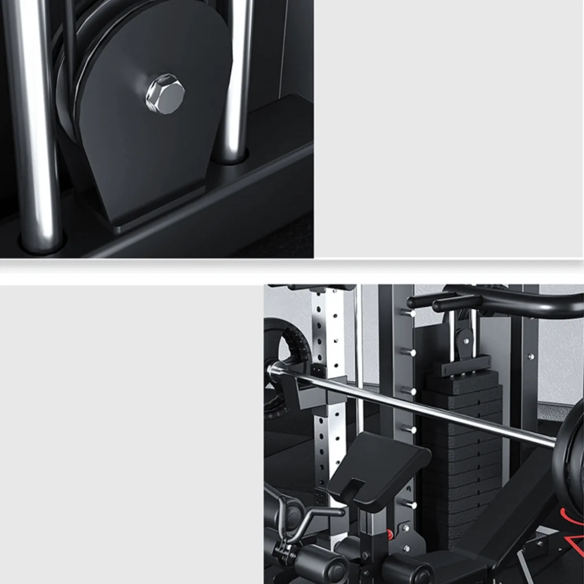 - The Smith Machine bar is attached.