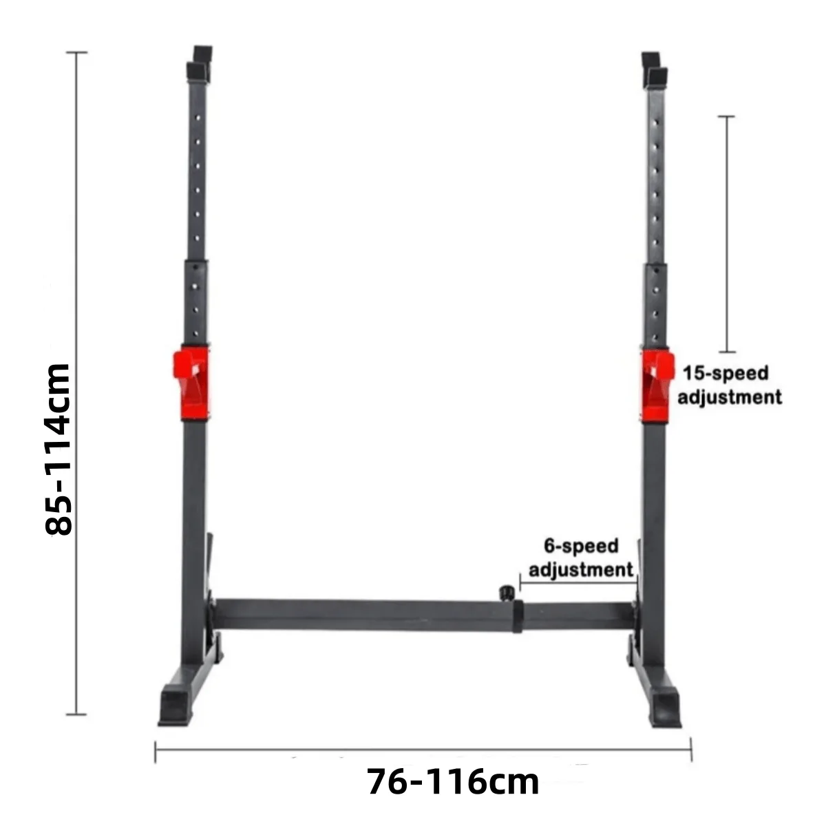 This squat rack has adjustable heights for bar holders that enable you to perform various exercises beyond squats, such as bench presses and shoulder presses,  making them versatile for full-body workouts. With its solid structure,  this rack allows lifters to gradually increase weights over time, promoting muscle growth and strength development through progressive overload.