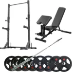 Squat Rack Package:Lee Warehouse published a little squat rack with barbell set combo deals for our customers, you can find out which deal you are interested in. If you have a bench at home only looking for a rack, barbell, and some plates, this set deal is your best choice. For beginners, you can start your training from 50kg weightlifting. For experts, you can get one 50mm barbell which is rated to 300lb, easy to start your heavy training at home.